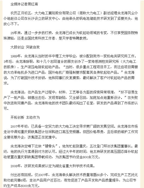 襄阳电视台之大力电工:全员创新 工人增收 企业增效